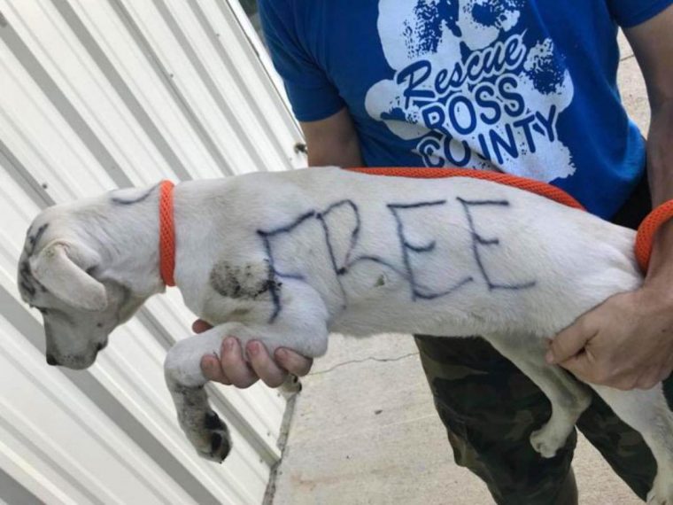Em um parque em Chillicothe, foi encontrado uma cadela em uma situação bastante estranha, o pobre cão estava com escrituras em seu corpo que revelam a triste verdade.