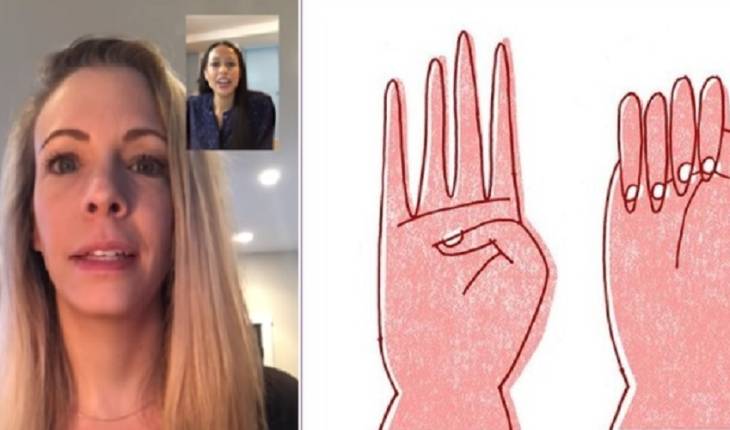 A jovem foi resgatada após fazer o gesto, que foi criado no último ano, por causa do aumento de casos de violência doméstica.