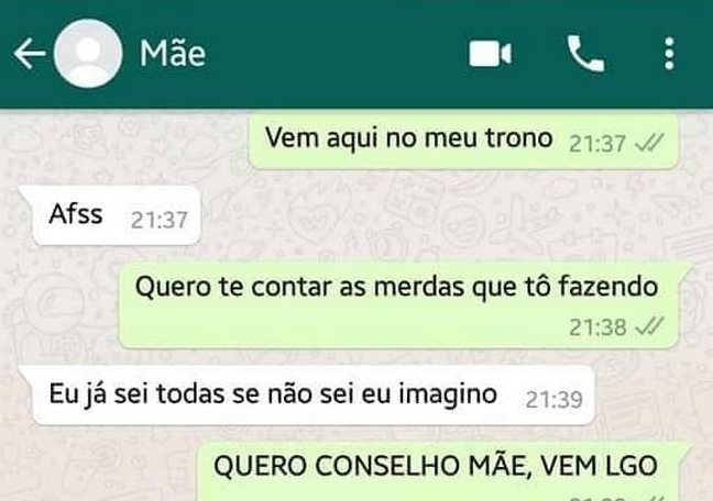 A filha pediu conselhos para a mãe pelo WhatsApp. A mãe, sem muita paciência por não ter sido ouvida outras vezes, diz a real para a filha e o print com as mensagens viralizou nas redes sociais.
