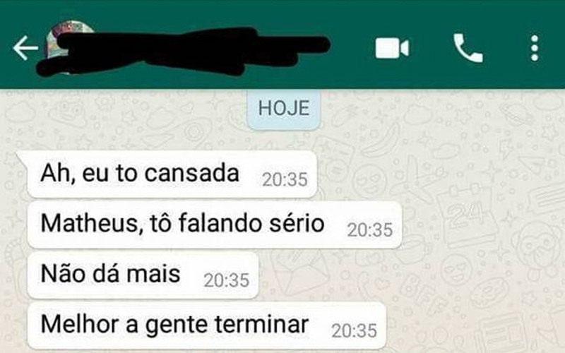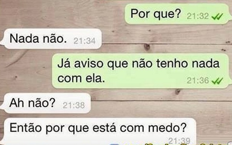 Este print mostra como as mulheres sabem deixar os namorados ou maridos com medo usando poucas palavras; muitas mulheres vão se identificar ao ler o print.