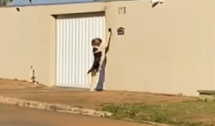 Dona do animal estava próximo do local e filmou toda a cena insólita do golden retriever ajudando.