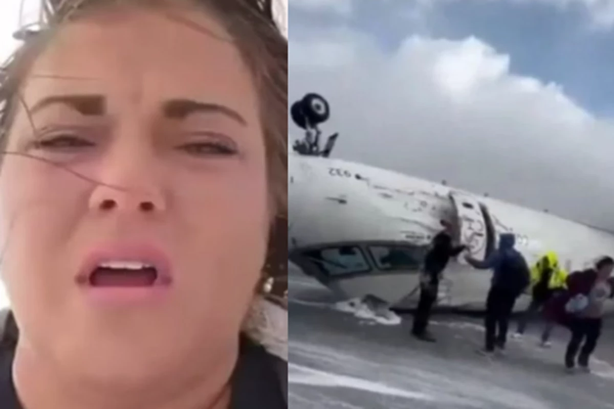 Momentos de tensão foram registrados por uma passageira após avião capotar quando fazia pouso.