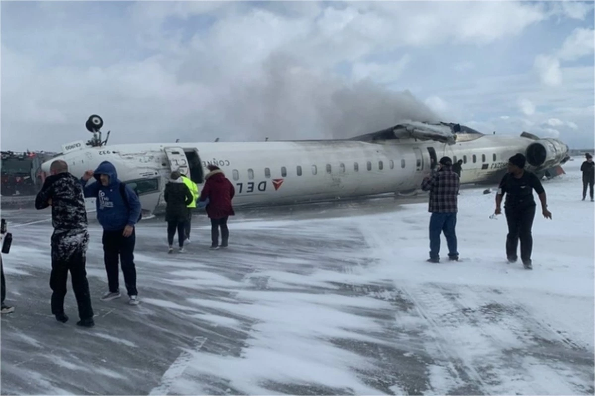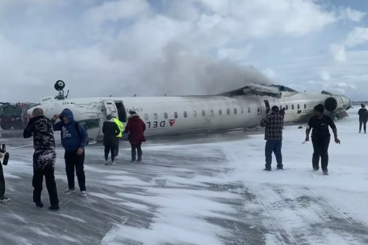 Aeronave capota na pista do Aeroporto Pearson, no Canadá durante aterrissagem.