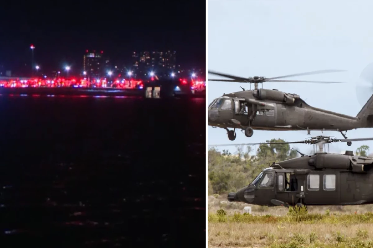 Avião com 64 pessoas a bordo caiu depois de colidir com um helicóptero militar dos Estados Unidos.