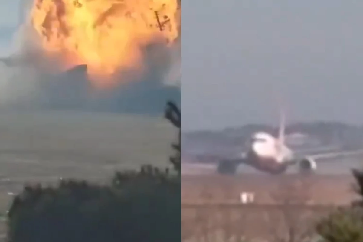 Acidente também foi registrado por câmeras e mostra explosão no aeroporto.