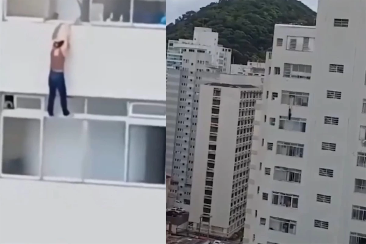 Vídeo: Mulher fica pendurada em janela de prédio enquanto vizinhos registram momento desesperador