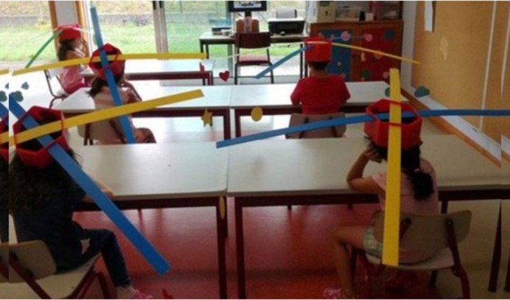 Esse chapéu é uma forma de manter as crianças distantes umas das outras, só que a ideia não agradou a todos.