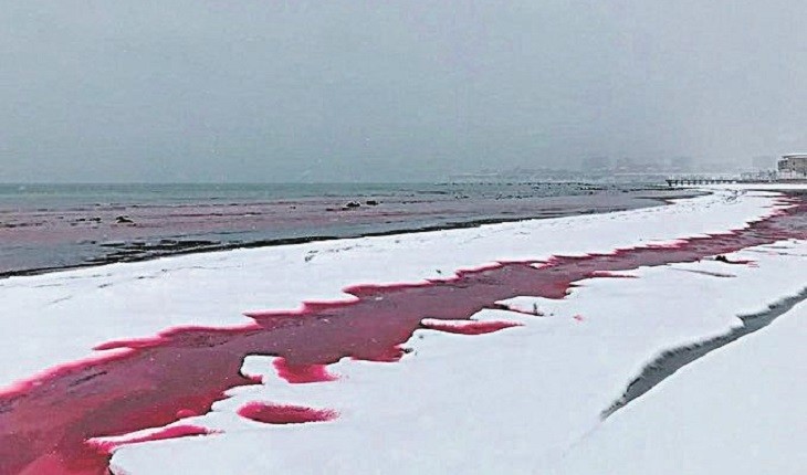 Um mar se transformou em ‘sangue’ na Ásia e pessoas ficam completamente assustadas.
