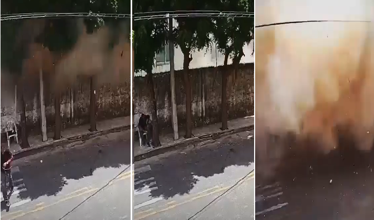 As imagens foram capturadas pelo circuito de segurança interno de um edifício nas proximidades do ponto do desabamento.