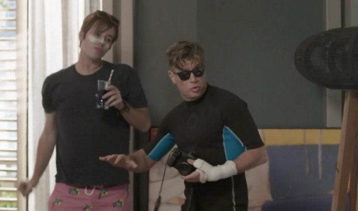 Max (Pablo Sanábio) e Arthur (Fabio Assunção) viram banhistas de apartamento em Totalmente Demais.