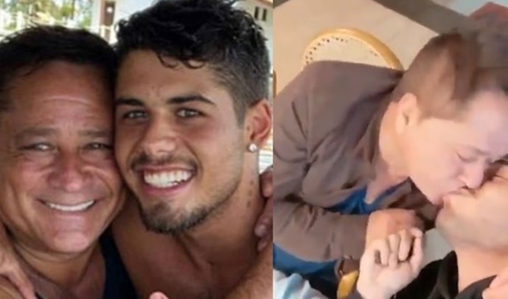 O cantor Leonardo e seu filho Zé Felipe curtiram momentos juntos enquanto ouviam música.