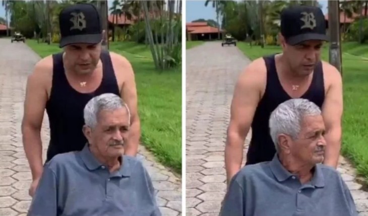 Cantor sertanejo acabou gravando vídeo em que passeia de cadeira de rodas com o pai, Francisco.