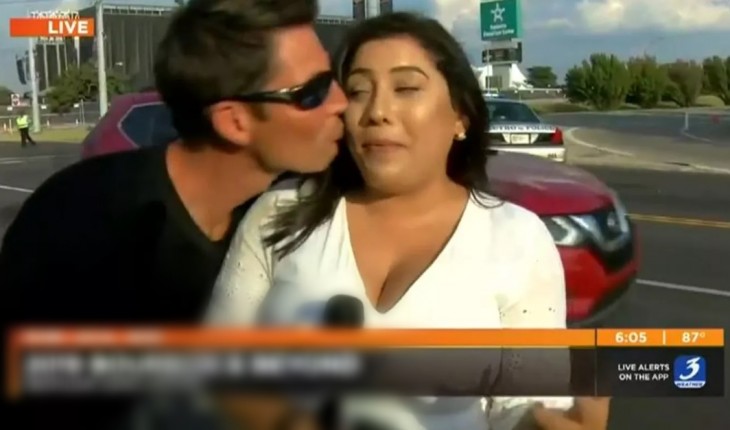 Um homem desconhecido tentou beijar a jornalista Sara Rivet enquanto ela trabalhava ao vivo.