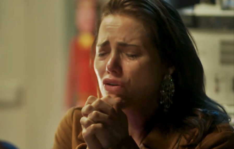 Desconfiado, Beto vai atrás da suposta filha e a coloca contra a parede.