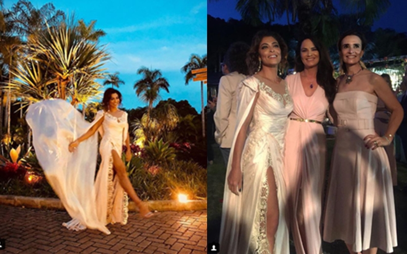Juliana Paes foi uma das convidadas para o casamento de Ísis Valverde. A atriz compareceu ao casório com um vestido que garantiu ser rosa, mas para muitos internautas a cor é branca.
