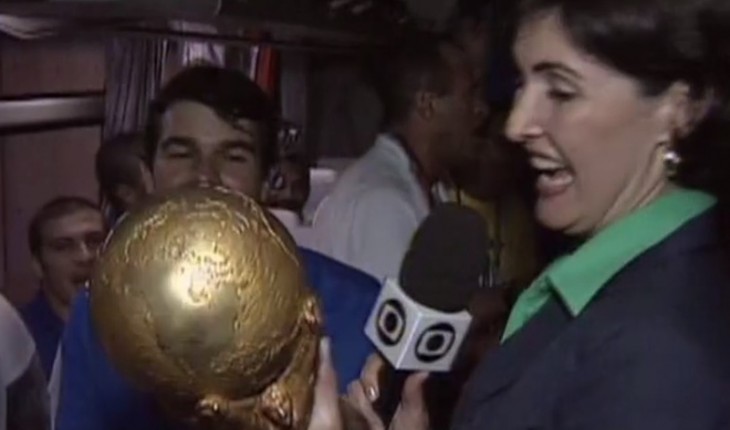 Fátima Bernardes tocou a taça da Copa do Mundo no ônibus da Seleção após a final de 2002.