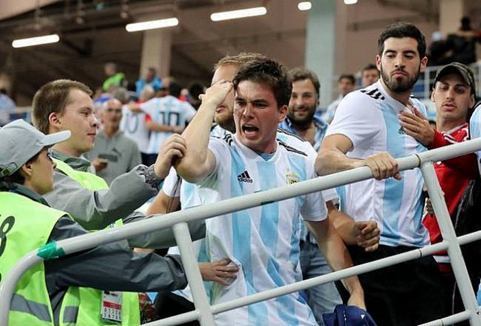 Depois da derrota por 3 a 0 para a Croácia, torcedores da Argentina foram flagrados agredindo dois croatas no corredor de uma setor de arquibancada do estádio em Níjini Novgorod. Em meio aos chutes e socos, um dos croatas consegue se levantar e se distanciar do grupo. O outro fica no chão e, no final da gravação, recebe um chute na cabeça. O ataque só termina depois da intervenção de outros argentinos, que dispersam o grupo e socorrem os croatas.