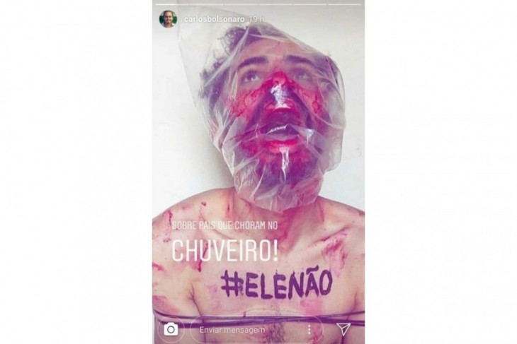 No post polêmico, um homem aparece coberto por um saco plástico e sangrando muito, além de estar com as mãos amarradas e a frase #EleNão, na qual vem sendo utilizada constantemente por mulheres que estão se manifestando contra a candidatura de seu pai.
