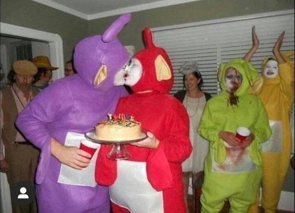 O que dizer então dessa festa estranha com esses personagens infantis. A foto ficou assustadora e gerou muitos comentários na rede social dessa galera.