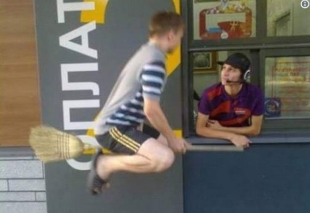 Na imagem abaixo, o leitor pode ver uma foto de alguém que chegou com uma vassoura voadora em um drive: