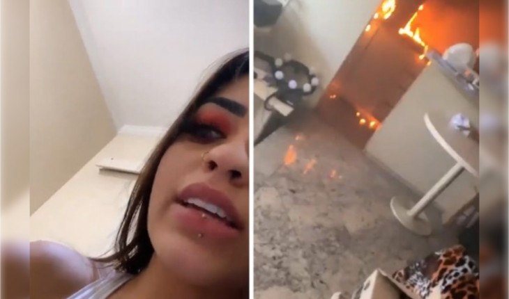 O fogo tomou conta de boa parte do flat da cozinha do apartamento em que ela mora, as imagens mostravam as chamas se espalhando rapidamente a funkeira se mostrou perdida, sem saber o que fazer.