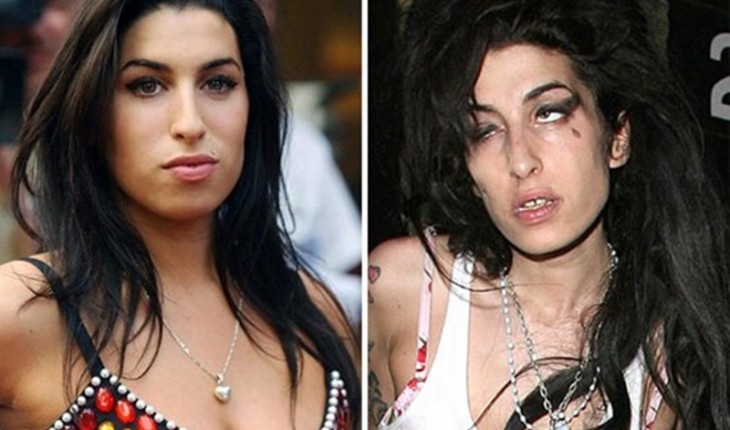 3. Amy Winehouse: a cantora tinha uma beleza admirável e um lindo corpo, mas teve sua aparência significativamente destruída por conta das drogas e bebidas. Amy faleceu aos 27 anos, em 2011.