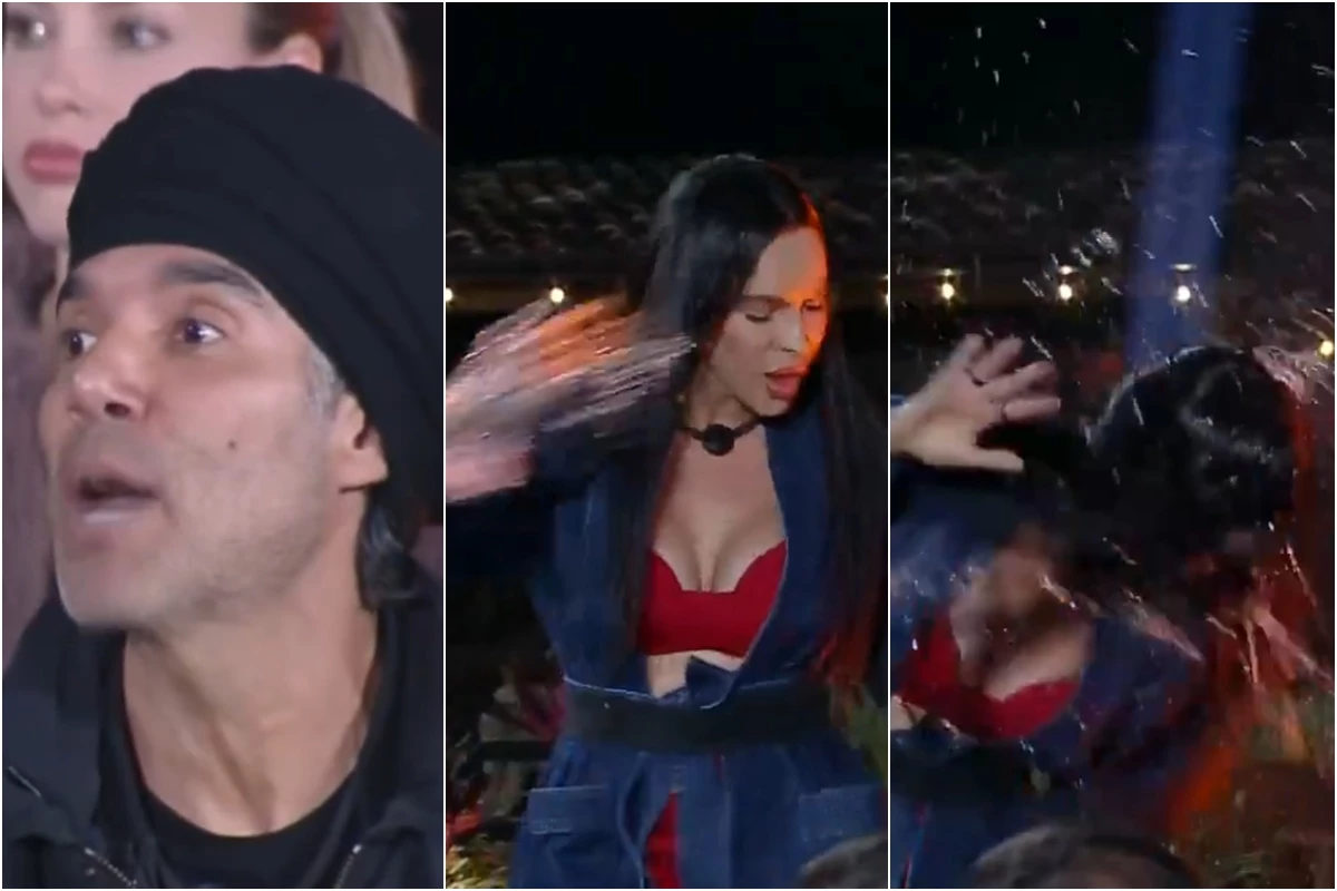 Vídeo mostra momento em que participante joga água na cara da colega de confinamento.