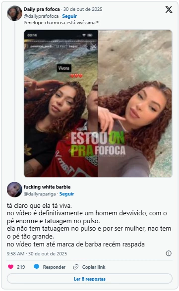 Dois dias após a operação, entretanto, rumores começaram a circular nas redes sociais de que a Japinha do CV estaria viva. No X (antigo Twitter), internautas compartilharam supostas imagens de Penélope e até prints de uma conta no Instagram atribuída a ela, na qual aparecia a mensagem: “Tô bem, mana. Jogaram foto fake dizendo que eu morri”.