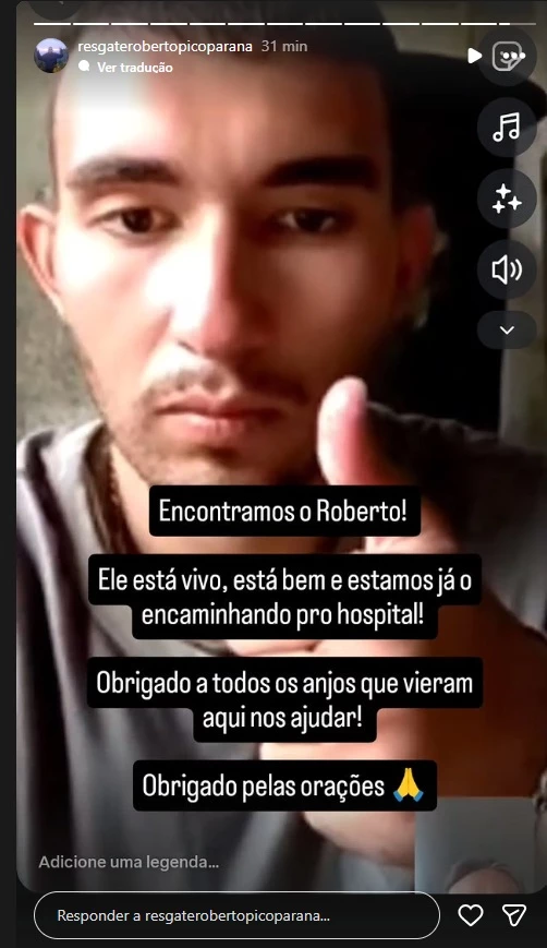 Além da atualização sobre o quadro clínico, a família destacou que a prioridade naquele momento era levá-lo ao hospital para uma avaliação completa, seguindo os protocolos médicos necessários após o período em que permaneceu desaparecido em área de mata e montanha. Segundo pessoas próximas, Roberto estava consciente e amparado pela equipe de resgate no momento em que foi encontrado.
