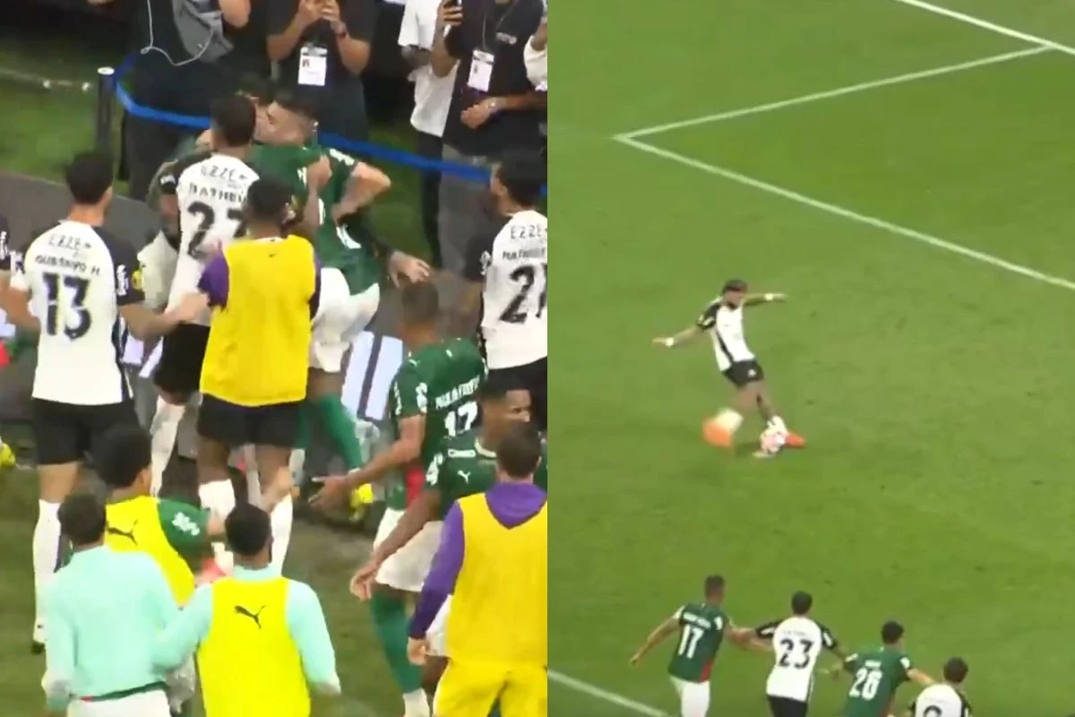 Aos 33 minutos da etapa inicial, o árbitro Raphael Claus marcou pênalti após o goleiro Carlos Miguel atingir a cabeça de Gustavo Henrique durante uma cobrança de escanteio. A decisão gerou reclamações imediatas dos jogadores do Palmeiras, enquanto o VAR analisava o lance para confirmar a penalidade a favor do Corinthians.