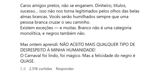 Relato de racismo