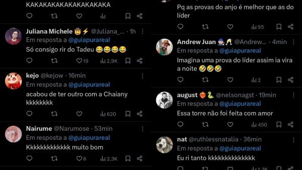 Não demorou para que o X (antigo Twitter) fosse inundado por memes. O perfil Apuração BBB resumiu o sentimento geral: “O Tadeu tendo um derrame ao vivo kkkk”. Outro usuário exaltou a performance do comandante da nave: “Podem falar outras coisas do Tadeu, mas narrando as provas ele é mestre“, comentou, exaltando a capacidade do apresentador de elevar a adrenalina do público.