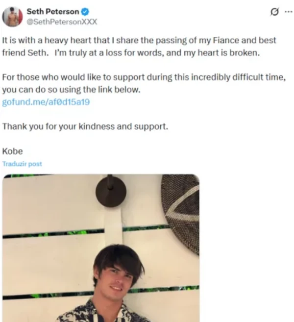 O ator de filmes adultos Seth Peterson, de 28 anos, foi encontrado morto em sua residência nos Estados Unidos. A confirmação do falecimento ocorreu recentemente, através de um comunicado oficial feito por seu noivo, Cyrus Stark.