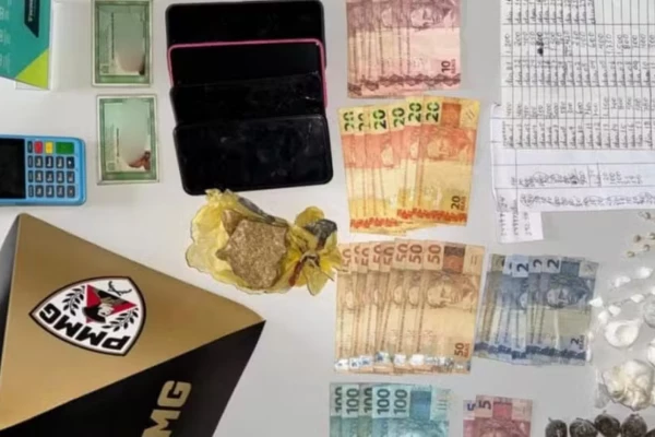 No local, os militares encontraram um casal, de 52 e 59 anos. Durante as buscas, foram apreendidas porções de crack sobre um balcão, além de celulares. No banheiro, havia mais drogas escondidas no lixo, incluindo crack e cocaína. Também foram recolhidos dinheiro, anotações do tráfico, máquina de cartão e dispositivo para transferências via Pix.