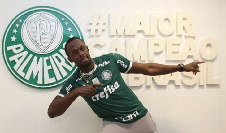 O atacante palmeirense saiu do sério e recusou dançar junto com o ex-velocista jamaicano.