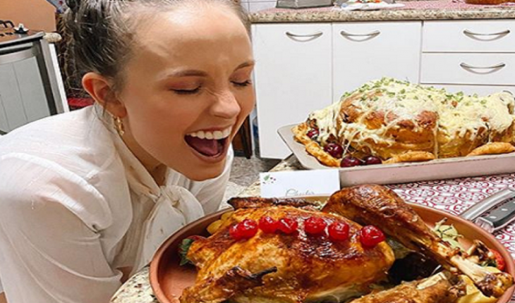 A atriz realizou uma festa de natal antecipada para a família e funcionários em sua casa.