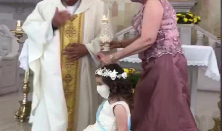 Religioso teve que se controlar para não cair na gargalhada diante de gesto da criança.
