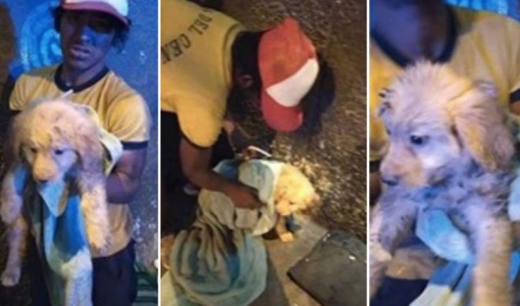 Internautas montaram rede de solidariedade para ajudar sem-teto e cadelinha.