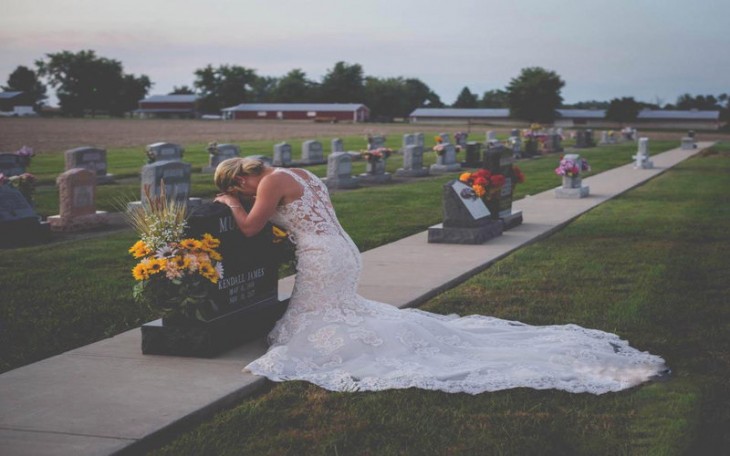 Noiva faz sessão de fotos no túmulo do noivo no dia em que os dois se casariam.