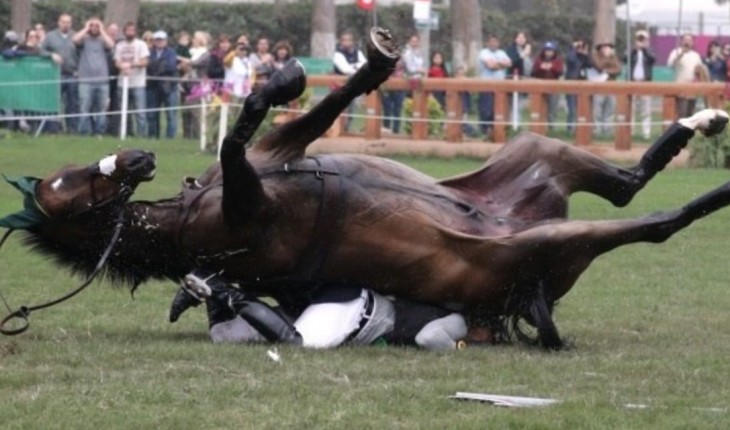 Apesar das imagens assustadoras, cavaleiro brasileiro passa bem, após gravíssima queda em competição.
