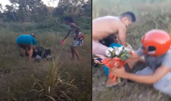 Imagens acabaram viralizando nas redes sociais, e mulher chega a cair no chão tamanho seu susto.