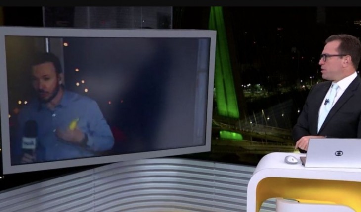 O repórter da Globo André Modesto foi surpreendido sem máscara na manhã desta sexta-feira (26).