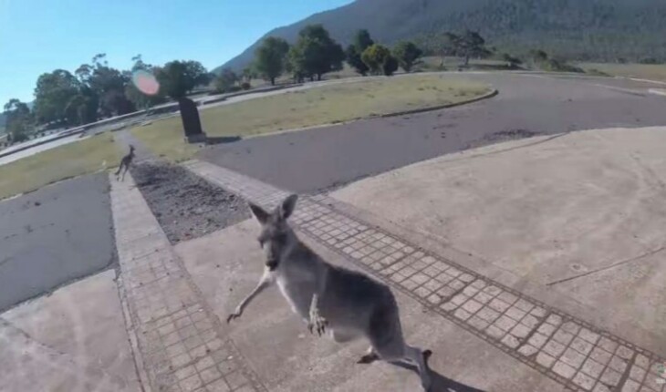 Após o pouso, paraquedista se viu em apuros ao levar um baita soco de um canguru.