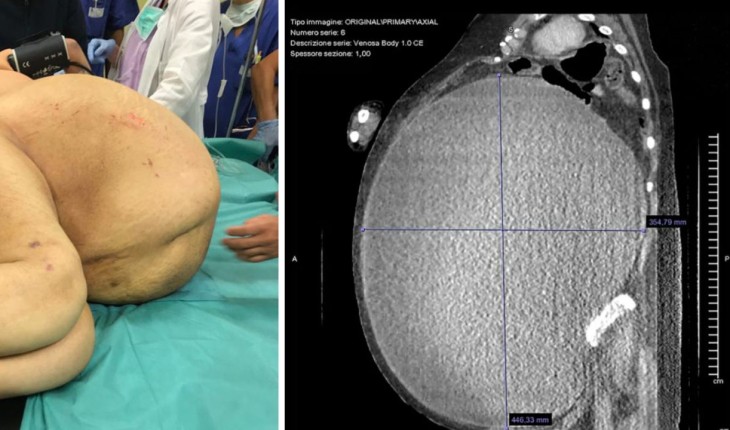 Uma mulher italiana perdeu mais de 50 quilos após cirurgia para retirar tumor gigante.