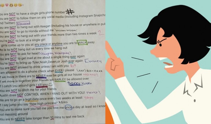 Ela fez uma lista de 22 coisas que seu namorado foi proibido de fazer e ainda exigiu que ele assinasse.