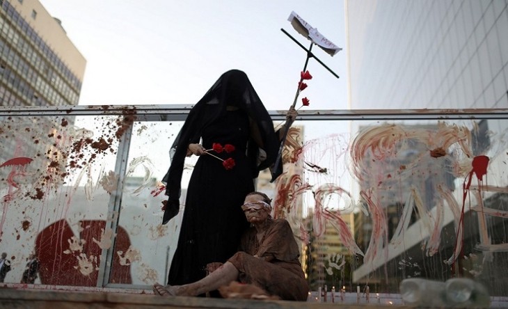 Manifestantes realizaram um protesto no início da noite desta segunda-feira (28) em frente à sede da Vale