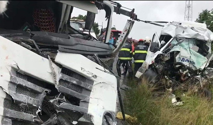 Acidente entre van e carreta faz várias vítimas fatais na manhã desta quinta-feira.