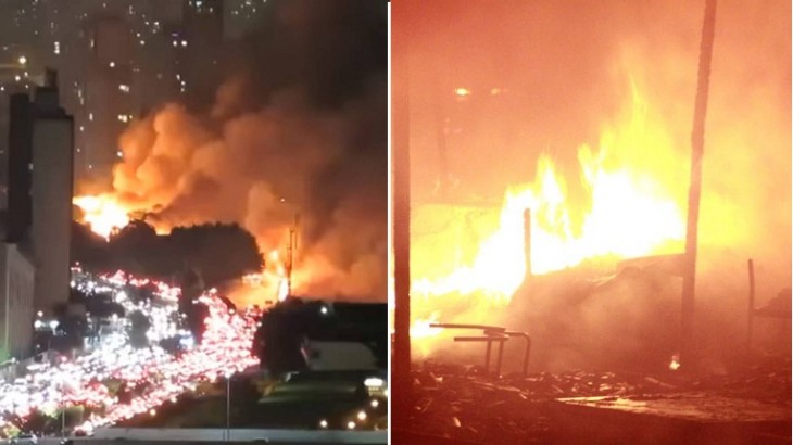 Um incêndio em uma favela de São Paulo deixa um rastro de grande destruição.