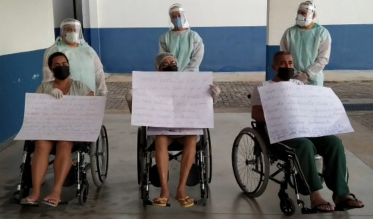 Eles agradeceram com cartazes pelo tratamento recebido e pela atenção da equipe médica.