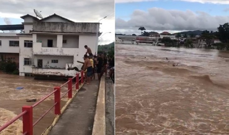 Nas imagens, feitas na tarde deste sábado, 25 de janeiro, Tarciano dos Reis Gama, de 19 anos, pula de uma ponte com outros três amigos.